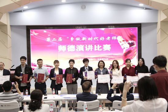 “争做新时代好老师”师德演讲比赛作为学校庆祝教师节和师德师风建设系列活动之一,每年9月20日“全国公民道德宣传日”前后,由学校人事处、党委教师工作部、党委宣传部、教师发展中心、工会和教育部师德师风建设基地联合举办,旨在弘扬爱岗敬业、无私奉献的高尚师德和优良师风,激励广大教师牢记育人初心使命,落实立德树人根本任务,认真履行教书育人职责,做新时代党和人民满意的“四有”好老师。
