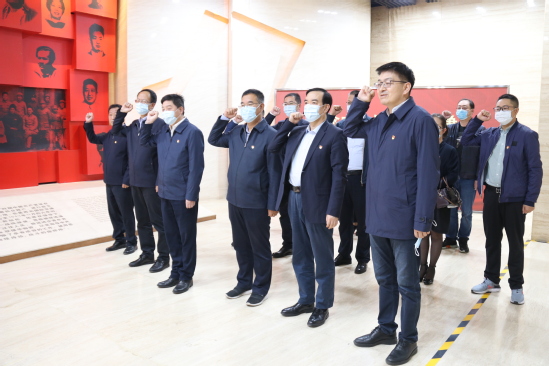 在纪念馆展厅,面对鲜红的党旗,张俊宗带领大家高举右手,重温入党誓词,接受思想和精神的洗礼。铿锵誓言,久久回荡,表达了校领导班子带领全校上下团结一心,攻坚克难,努力推动学校各项事业高质量发展,扎根中国大地办教育,为建设幸福美好新甘肃贡献力量的坚定决心。