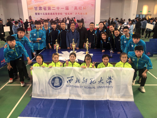 西北师大代表队获得乙组男子团体冠军、女子团体季军,获得甲组女子团体第六名、男子团体第八名的优异成绩,陈思畅同学获得乙组男单冠军、郭悦容获得乙组女单第四名的成绩,展现了西北师大体育健儿的良好精神风貌。