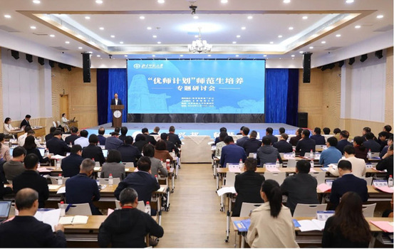 在“优师计划”师范生培养专题研讨会上,王占仁汇报了我校开展“优师计划”工作的情况,并提出了进一步完善优师计划师范生培养工作的意见和建议。他指出,学校发挥师范专业建设的传统优势,将优师专项计划培养放在具有深厚积淀、人才培养质量高的传统优势专业中,将其作为推动师范专业建设和教师教育改革的重点工作和突破口;坚持把优师专项师范生招生作为招生宣传重点工作,通过多种方式,吸引优质生源报考;坚持德才并重,强化师范生理想信念教育;注重以本为本,开足开好专业课程,加强教师教育课程体系建设,全面提升师范生专业素质能力。